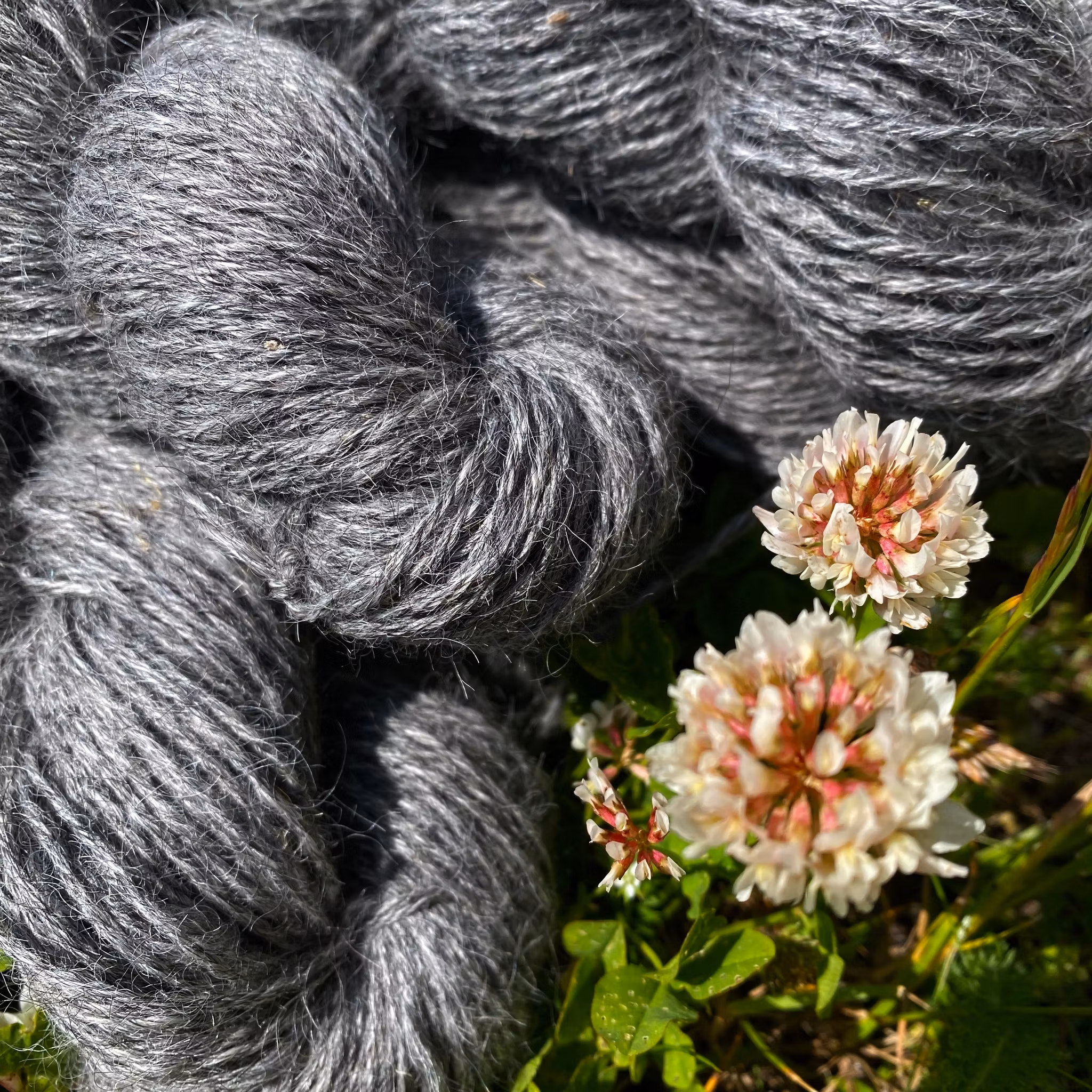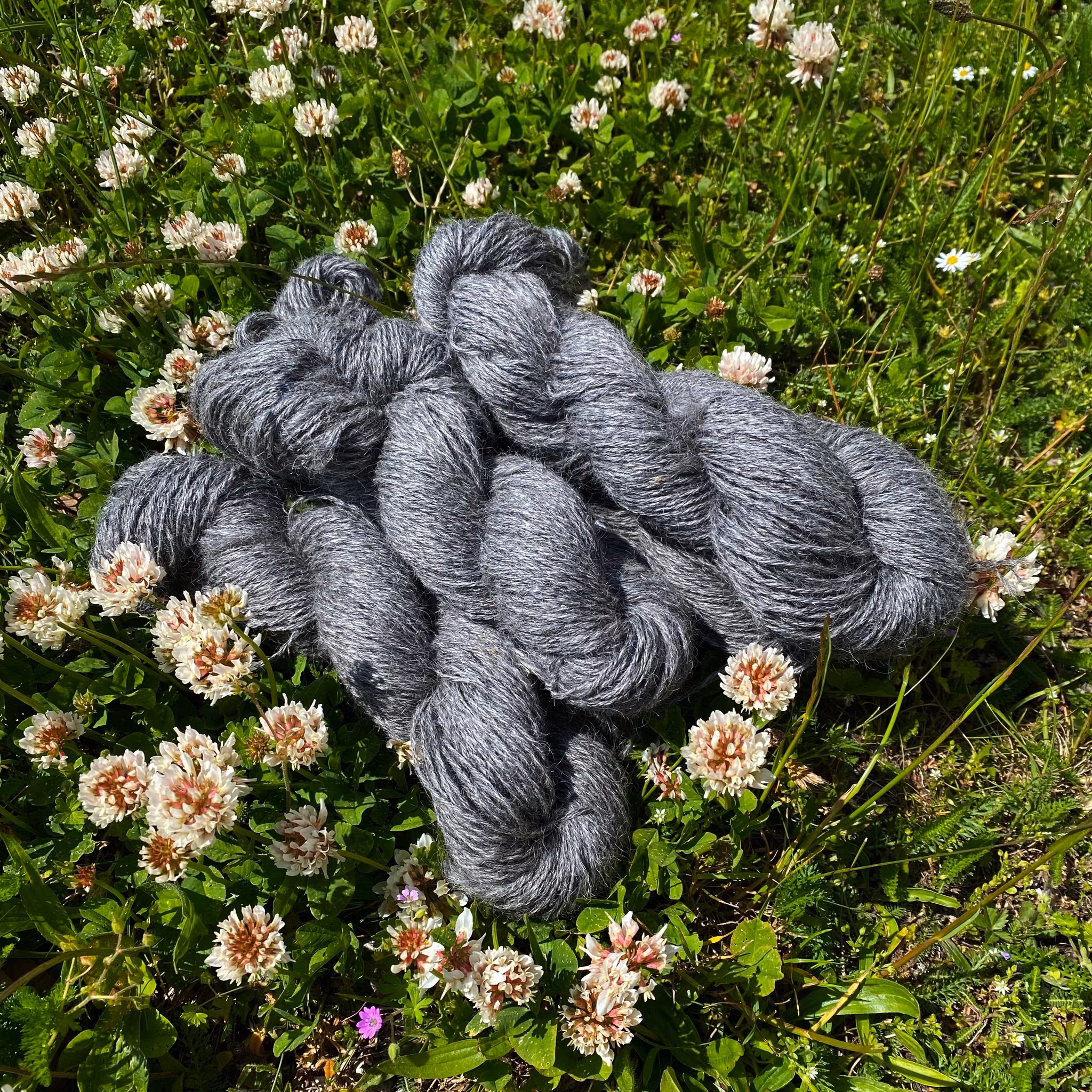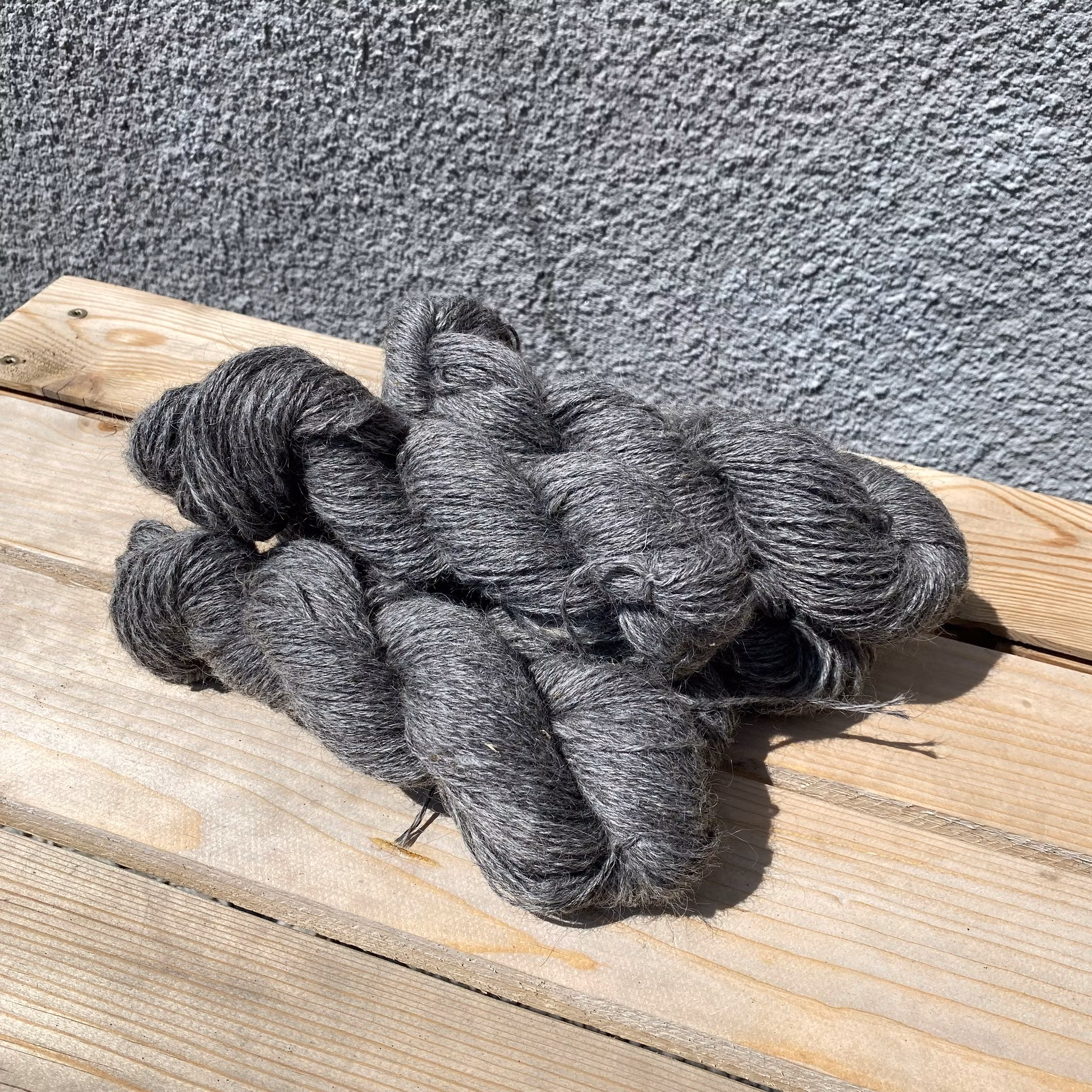 Detta är ett garn skapat av Gotlandsfårets naturgrå lockar. Ullen kommer från tackor med lite skiftande grå nyanser men när det blandas får man fram den typiskt metallgrå eller silvergrå färgen som Gotlandsfåren har. Ullen är spunnen och tvinnad till fyrtrådigt halvkamgarn (Nm6/4) ca 150 m/hg.