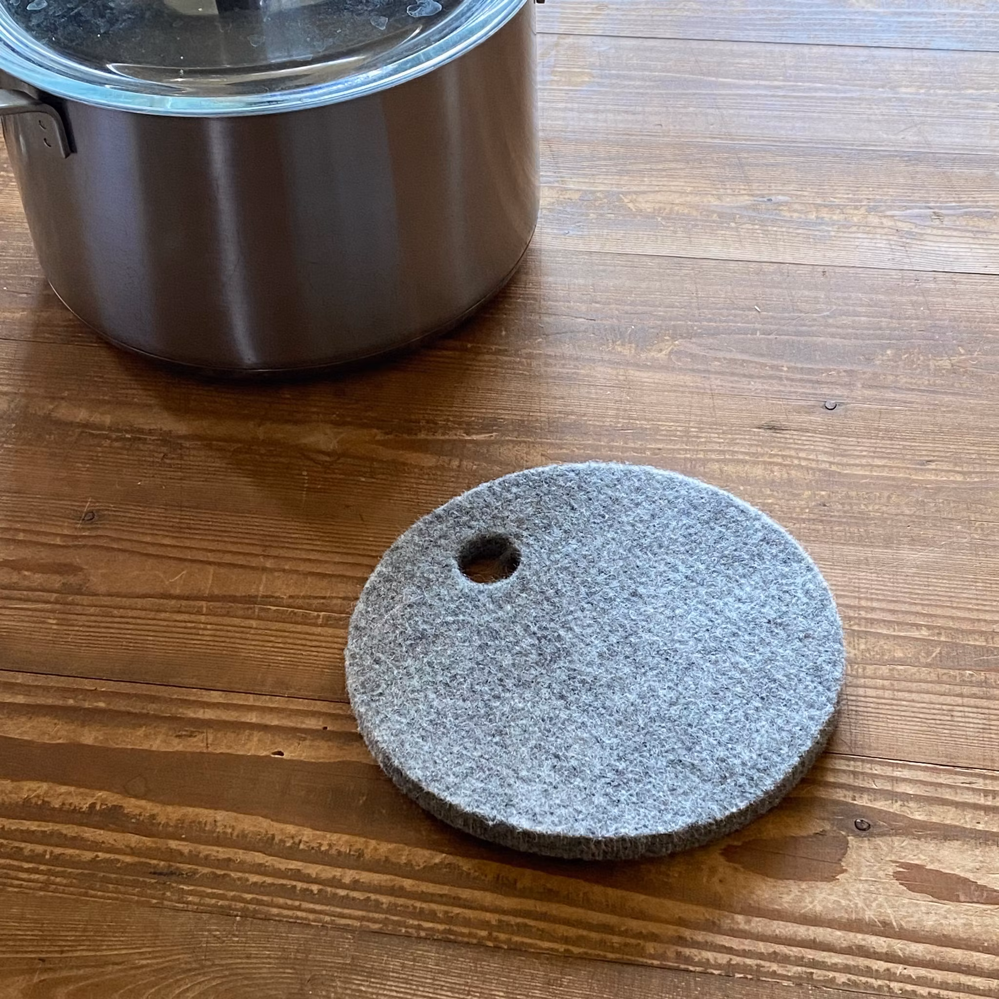 Liksom alla Ullkontorets produkter är detta en helsvensk produkt, alltså BÅDE tillverkad av Inhemsk ull OCH där alla förädlingssteg skett inom landet. Ullen är insamlad på Gotland och i Mellansverige, tvättad av oss på Gotland och sedan skickad till en fabrik i Halland som kardar, nålfiltar och skär ut den färdiga produkten. Vi har använt 50% grå ull från Gotlandsfår och 50% vit ull från olika korsningsfår för att få fram den ljusgrå färgen. Kombinationen fungerar bra både i produktionen och som smutstålig färdig produkt.