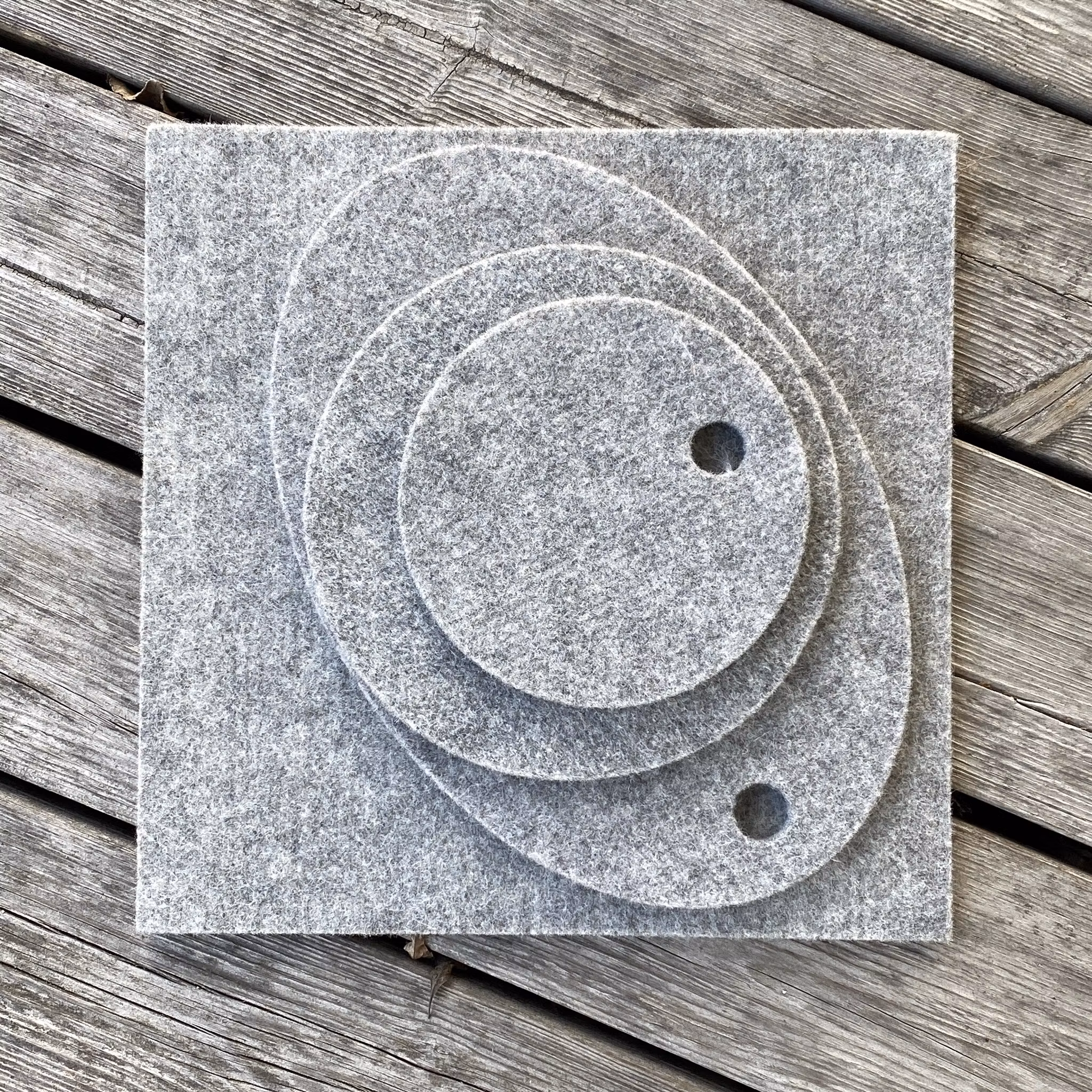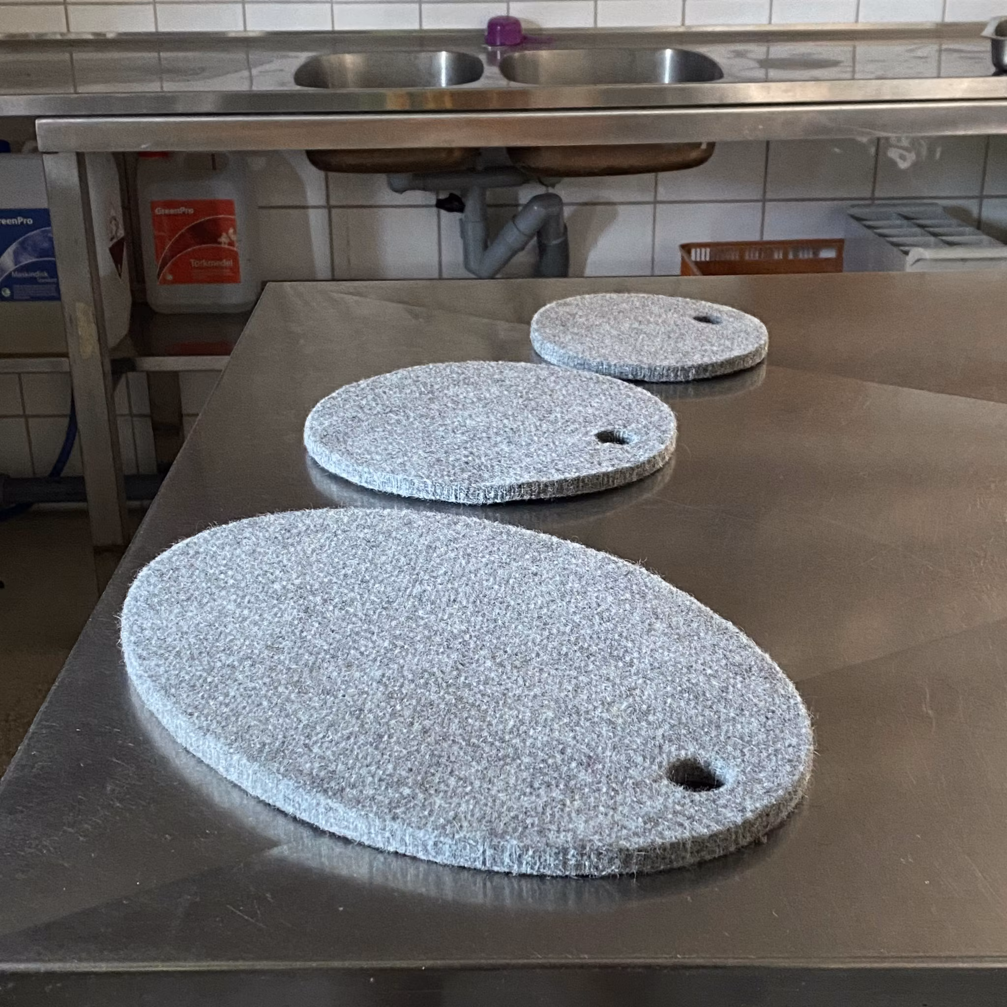 Liksom alla Ullkontorets produkter är detta en helsvensk produkt, alltså BÅDE tillverkad av Inhemsk ull OCH där alla förädlingssteg skett inom landet. Ullen är insamlad på Gotland och i Mellansverige, tvättad av oss på Gotland och sedan skickad till en fabrik i Halland som kardar, nålfiltar och skär ut den färdiga produkten. Vi har använt 50% grå ull från Gotlandsfår och 50% vit ull från olika korsningsfår för att få fram den ljusgrå färgen. Kombinationen fungerar bra både i produktionen och som smutstålig färdig produkt.