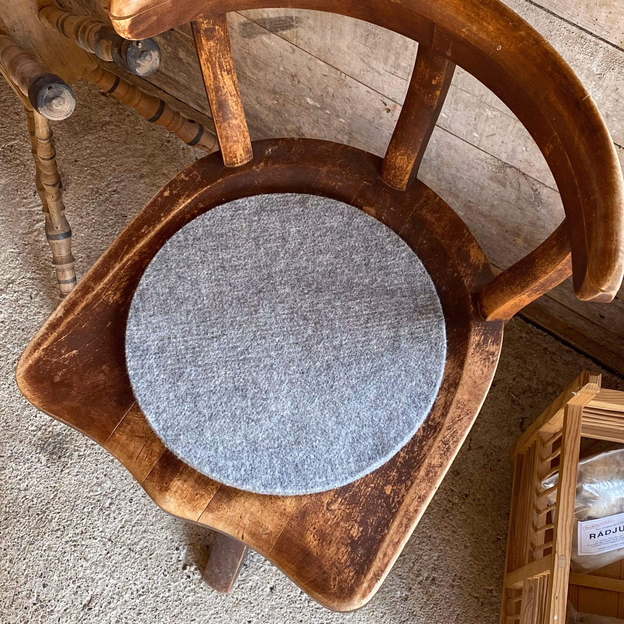 Stilren, cirkelrund stolsdyna. 35 cm i diameter. Stadig kvalitet, ca 1 cm tjock. Väldigt skön att sitta på! Passar även om du vill nålfilta ett eget motiv på dynan.